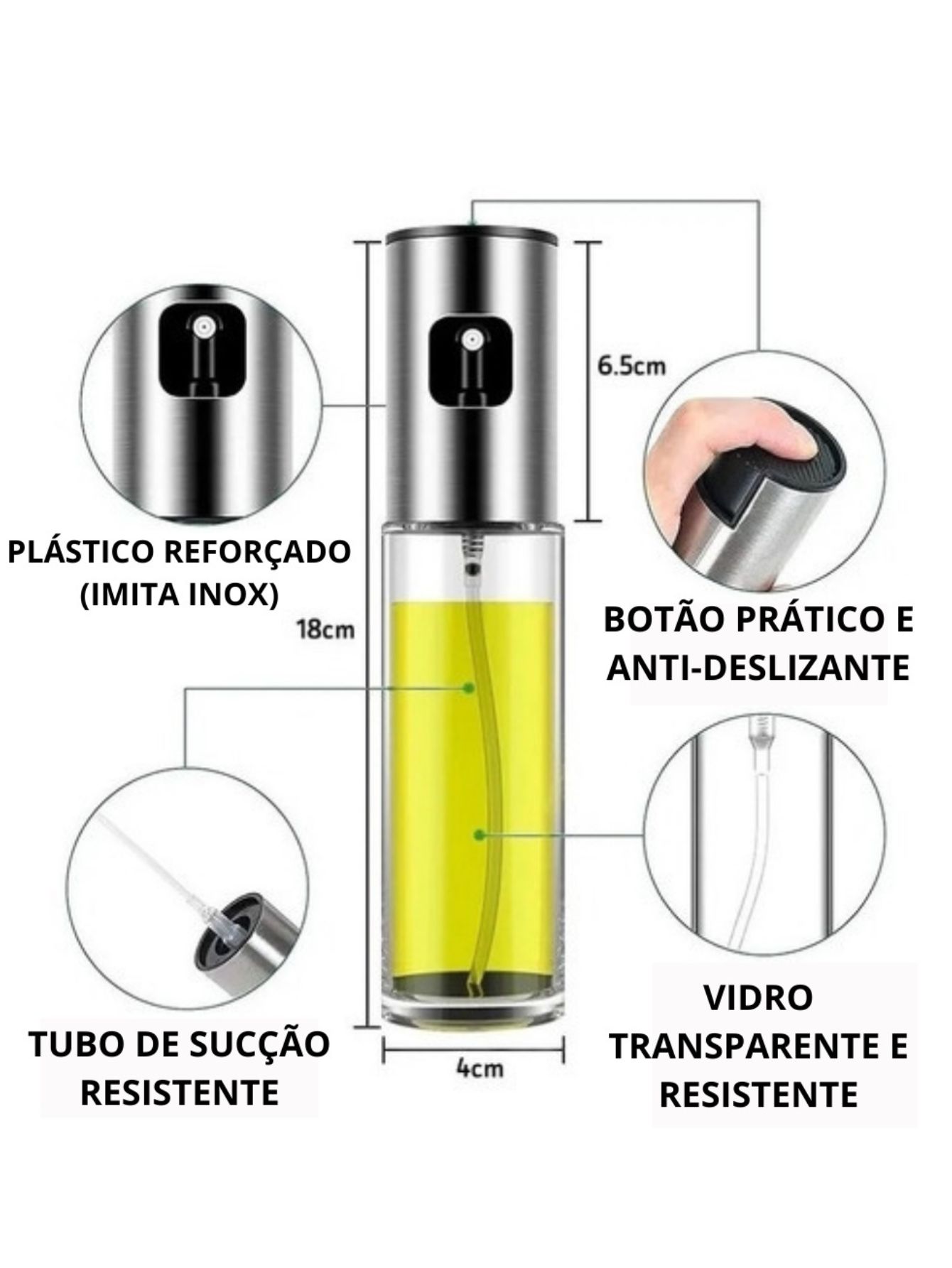 – Medidas Aproximadas do Spray: 4cm Diâmetro x 18cm Altura